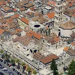 Hotel Vestibul Palace & Villa - Small Luxury Hotels Of The World Split, som har 11 rum, är beläget cirka 25 minuter till fots från Museet för kroatiska arkeologiska monument. Detta 4-stjärniga hotell erbjuder en parkering till 45 EUR per dag i närheten.